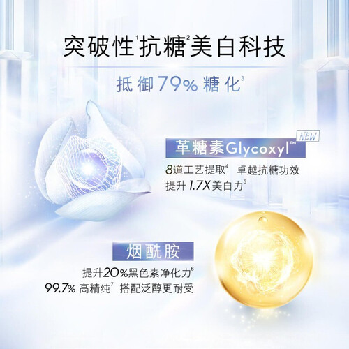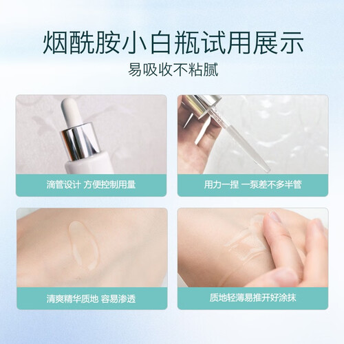 添加高纯度烟酰胺,干扰黑色素生成,淡化斑点与痘印,令肌肤重焕亮泽状态。清爽水润的质地,轻松推开易吸收,各种肤质均可用。