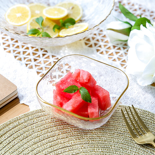 方形的外型设计搭配碗口边缘手工描金,低调中又体现出轻奢韵味。浮雕形状的设计除了美观之外,还具有防滑耐磨的用处。