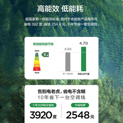 搭载大直径贯流风扇,可有效提升出风量,制冷制热速度更快。使用全铜连接管,可有效避免漏气,制冷制热效果更好。