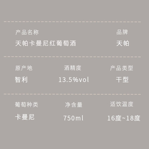 甄选智利进口,采用优质原料,搭配中央山谷气候酿造,品质有保障。正宗品质,适合多种场合饮用。酒香浓郁丰富,口感丰富单宁。
