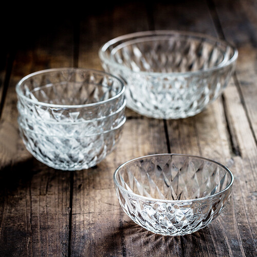 厚实碗壁,加厚更坚固耐用,品质看得见,可叠放节省空间。采用石英砂,无铅玻璃,不添加回收料,玻璃晶莹透亮。