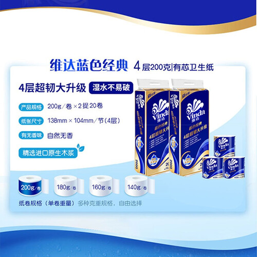 使用绿色环保的木浆为原料,不添加任何有害化学成分,家人使用更安心。4层纸质厚实柔韧,湿水不易破,更不产生纸屑。