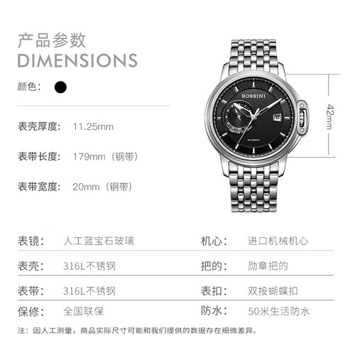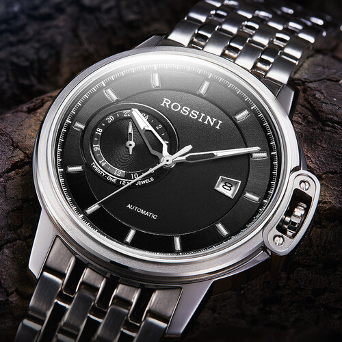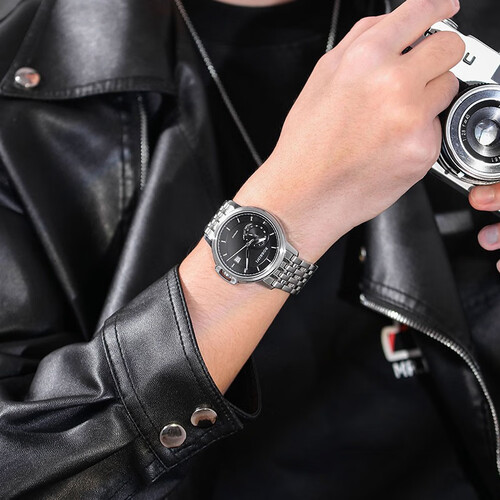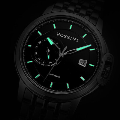 6点位设计有24小时功能小盘,便于掌控时间。字钉与指针覆有环保夜光涂层,昏暗的环境下也能清晰读取时间。