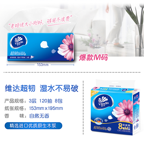 维达 抽纸 超韧3层