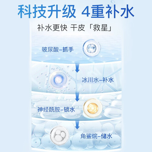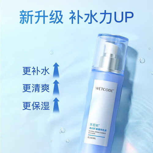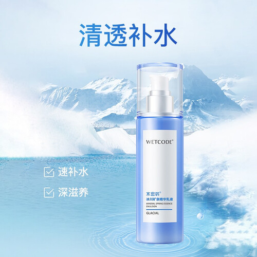 蕴含冰川矿泉水成分,小分子高活性易于渗透,深层抚平粗糙肌肤更细嫩。更能维持肌肤水油平衡,面部持续清爽,改善油性肤质。