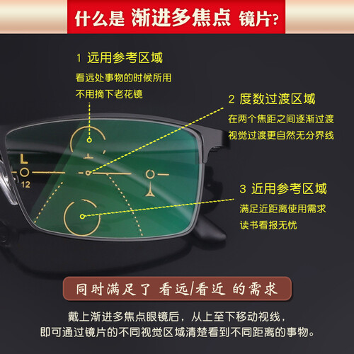 明业黑色远近两用智能老花镜