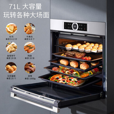 拥有大容量空间,一次烤制大量食材,更省时间,让家人下班不再饥肠辘辘。搭载4D热风烘烤,均匀全覆盖,多层烘焙无顾虑。