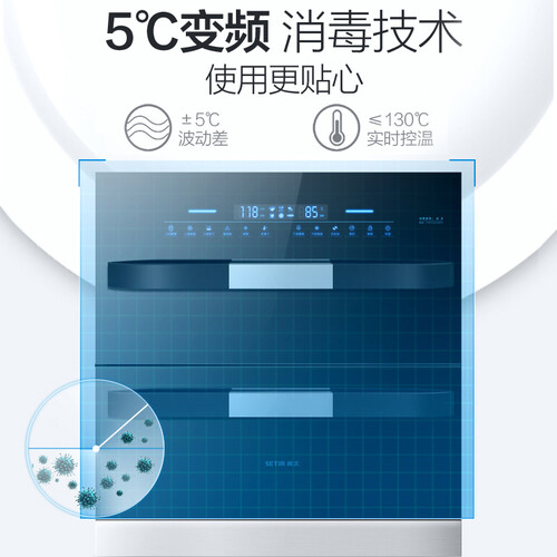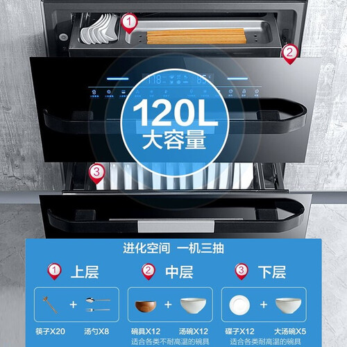 设有12键强消毒模式,变频消毒,深层次洁净餐具污渍、细菌,食用更加安心。采用奥氏体型不锈钢材质,更耐高温。