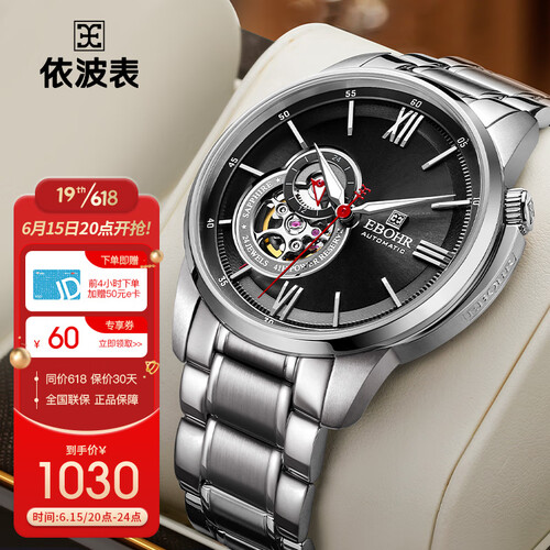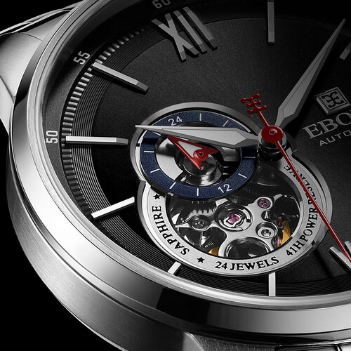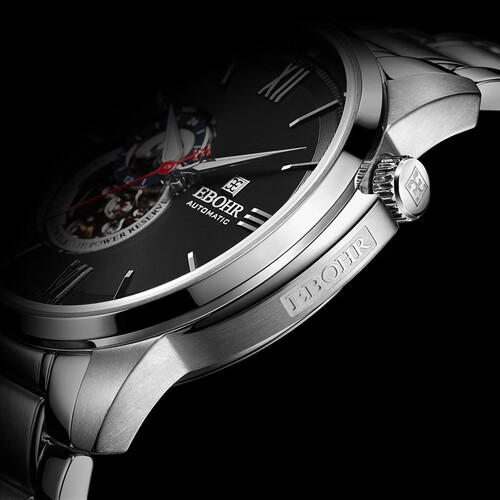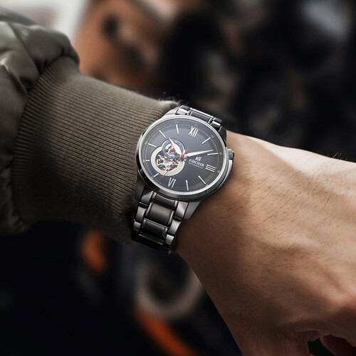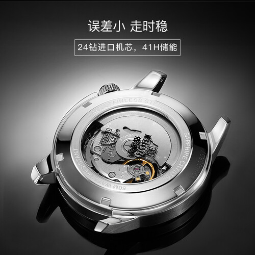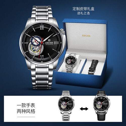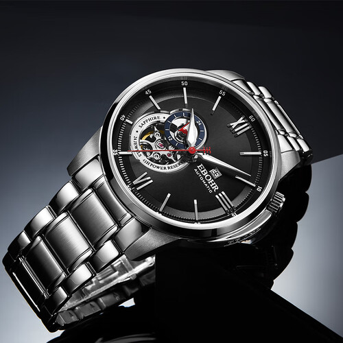 表内的镂空设计,将手表内部齿轮显露无遗,规律而优美。钢化表带搭配黑色表盘相得益彰,彰显男性不俗的生活品味。