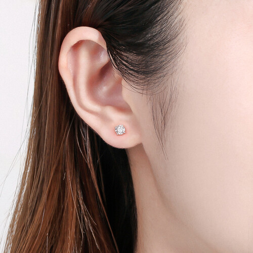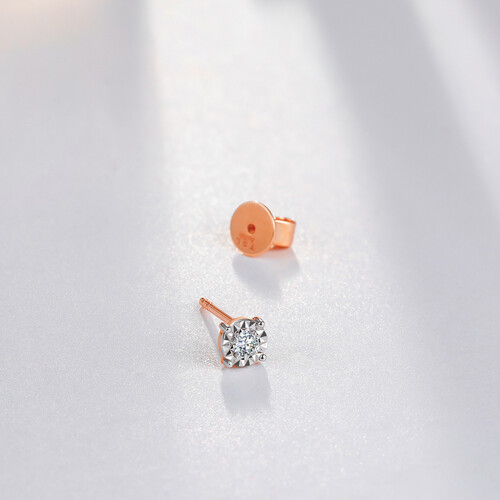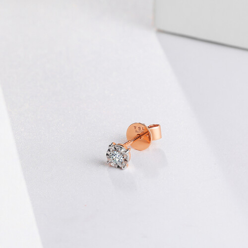 造型小巧又精致的K金耳钉,辅助一颗钻石作点缀,佩戴起来光泽闪耀更加迷人。结合上精细的打磨工艺,细节之处可凸显出品质感。