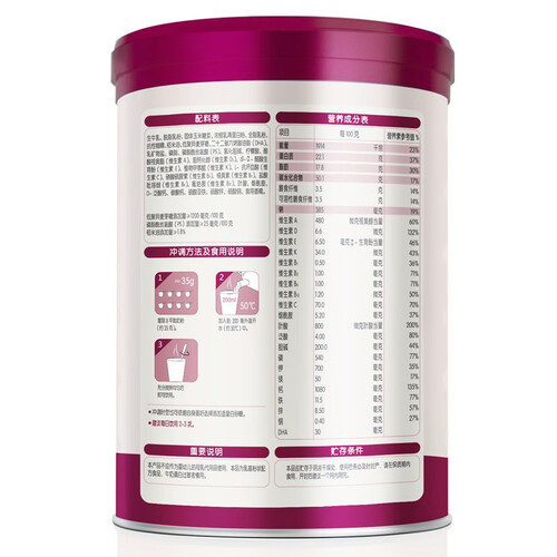 添加膳食纤维,呵护孕妈肠道健康。富含DHA等营养,助力宝宝脑力成长。必需营养,易缺乏营养和珍稀营养三重呵护,助力好孕。