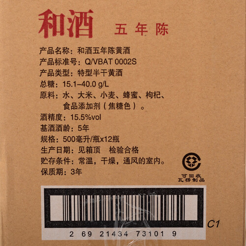 和 五年陈酿黄酒
