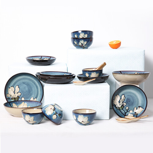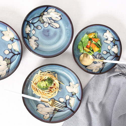 釉下彩工艺制作的碗碟,色彩清新自然,釉面也温润透亮。采用纯手工手绘制作的印花,手法细腻、工整,更加的美观。
