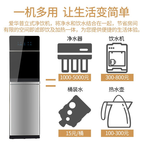 支持水质过滤的一体式饮水机,能有效净化水中杂质,让你放心饮用。待机0功耗的特点,使其消耗电能更少,节省更多电费。