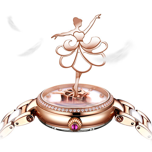 表盘中的舞者图案,既象征着女性的知性优雅之美,又能展现出时间流动的音律之美,为手表增添了不少雅致的气息。