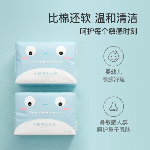 精选优质原生木浆,木质纤维完整,具有良好的韧性和大自然的气息,内含保湿面霜成分,手感柔软,亲肤舒适,宝宝使用妈妈更放心。