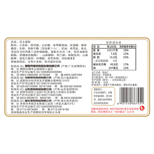 港荣 口感香醇淡糖蛋糕