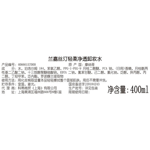 这款卸妆水具有出色的清洁力,内含清洁因子,可以温和卸除彩妆,令肌肤清爽净透,搭配罗波蝶兰提取物,帮助柔软肌肤。