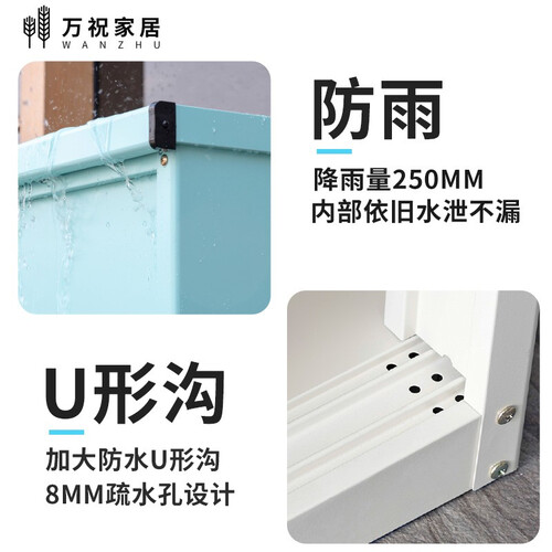 顶盖采用圆弧形的设计,可以防止流水进入柜子内部,淋湿其内衣物。宽大的U型防水沟,可以迅速的排出水流,大量雨水也不用担心。