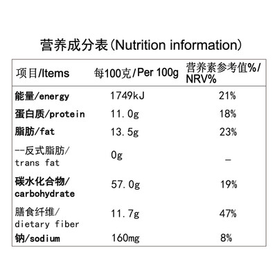 富含粗粮和膳食纤维,吸收水分会膨胀,增强饱腹感。用心选材,严格加工,拒绝添加防腐剂,孕妇儿童也可以放心食用。