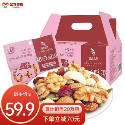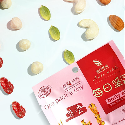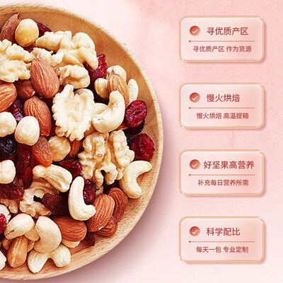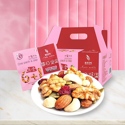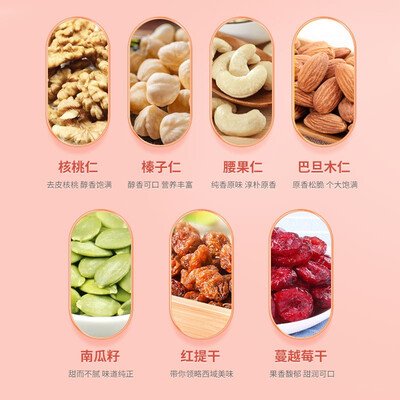 内含有7种坚果口味,经过烘焙师高温烘焙,达到极佳的口感,并且营养成分不会流失。是一款老人孕妇小孩都适合的混合坚果礼包。