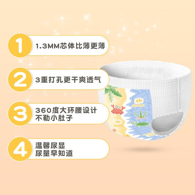 设有超多透气孔,让清新空气自由流动,小屁屁不潮湿。方便夏日穿着的轻薄款式,宝宝干爽学步没有束缚感。