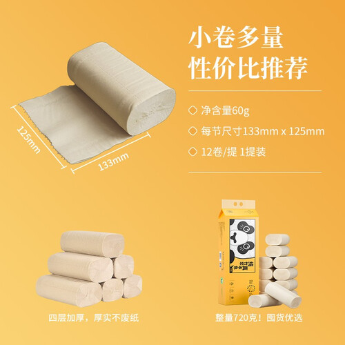 以优质竹浆制作的卷纸,环保健康,无刺激性气味,并且擦拭不掉屑,女性特殊时期也能放心使用。