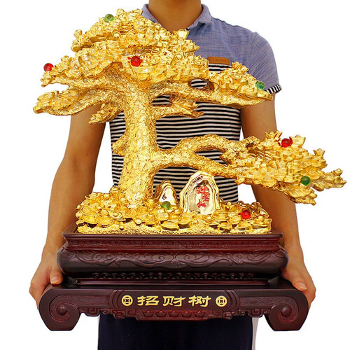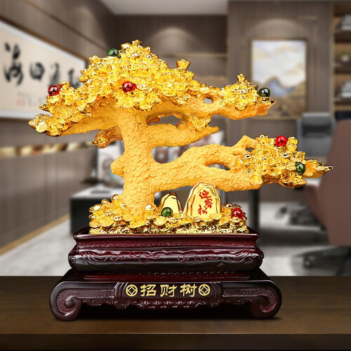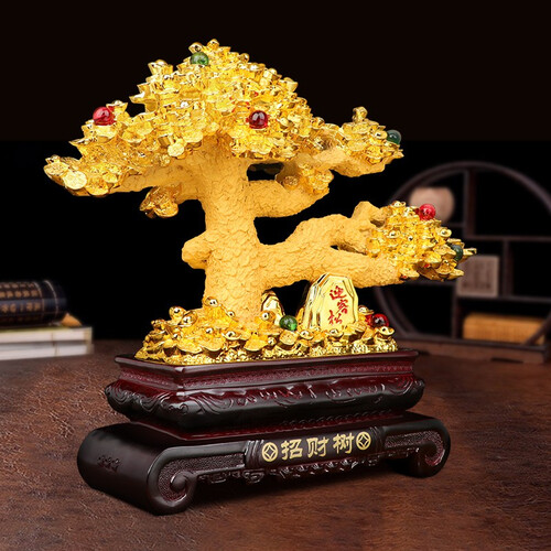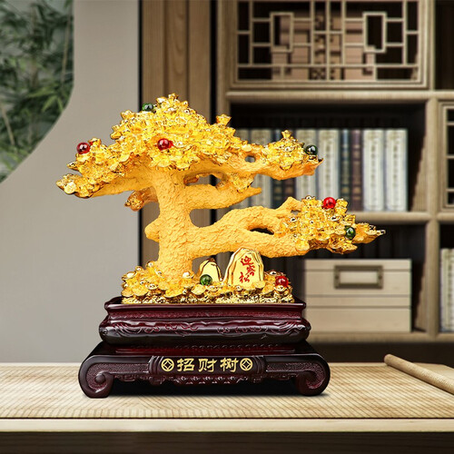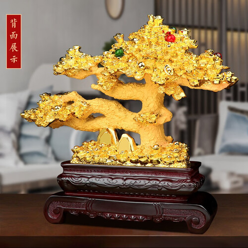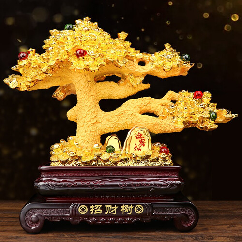 招财树上镶嵌有多颗圆润宝石,在一片金灿灿的树叶中显得跳跃抢眼,打破了单一招财树的单调,看起来不那么俗气。