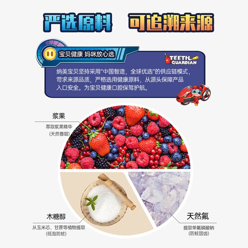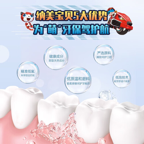 不含漂白剂、酒精、激素等有害物质,成分安全可吞咽;采用低泡技术,不仅口感温和泡沫少残留,而且缓解宝宝刷牙呕吐问题。