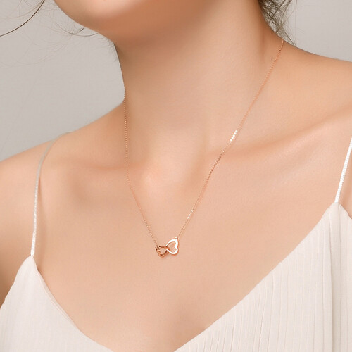 采用双心相扣设计,丰富立体层次感,同时又具有美好的寓意,更加甜蜜。选用18K彩金材质制作而成,拥有良好的光泽度。