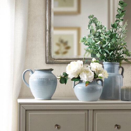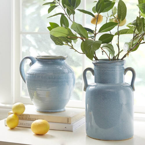 采用质朴的水壶设计,淡蓝色更有美式田园油画感,复古风格可装点家居;流釉着色工艺,与陶瓷本色结合仿若月下光华,盈盈动人。