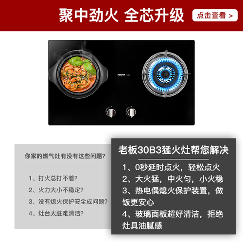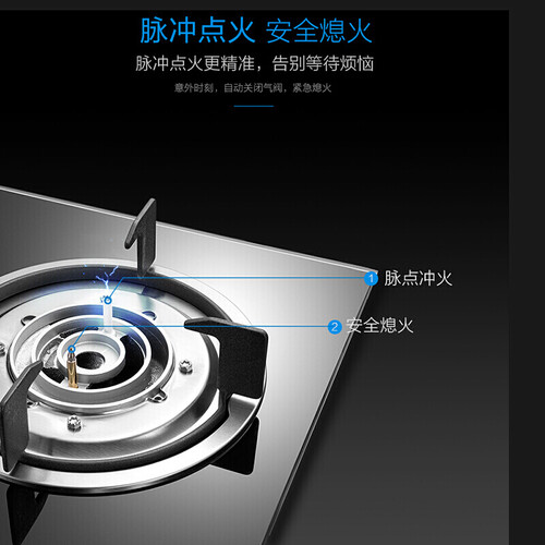 拥有黑晶防爆面板,外观优雅同时具备保护功能,使用更放心。四梯度火道均匀加热,燃烧充分节能减排。脉冲点火,节约等待时间。
