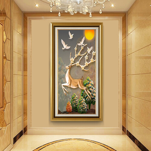 这是一款竖版山水画,富有美好的寓意,适合挂置于玄关处。加之创意双框设计,凹凸有致,可提升家居格调。