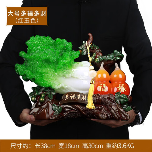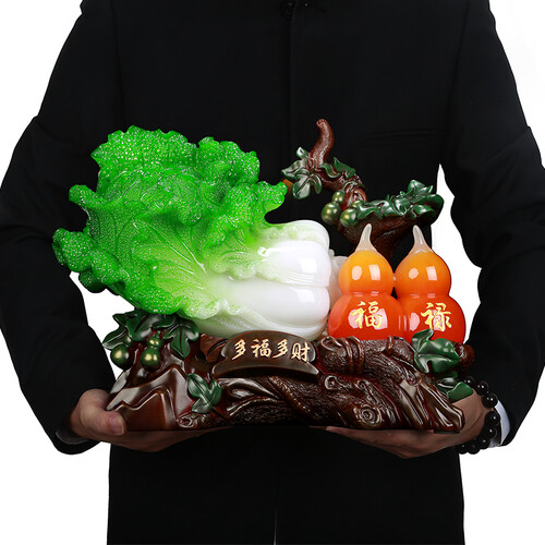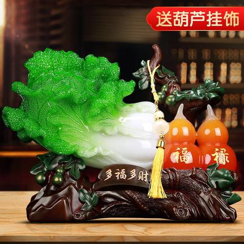 白菜的寓意为百财,以白玉色和翠玉色搭配,美观大方;整体纹理清晰,层次分明,充满韵味,与葫芦造型结合,更具创意,寓意美好。