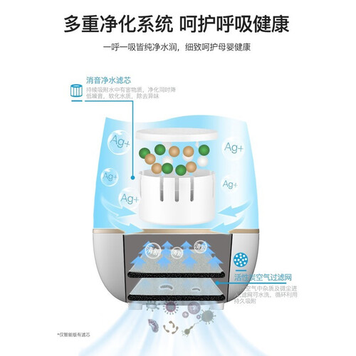 拥有独立香薰盒,可滴入精油使用,让家人安心睡眠。配备贴心暖灯,散发柔和光芒,起夜更方便。多重过滤净化水质,呵护呼吸健康。