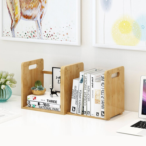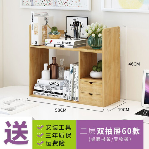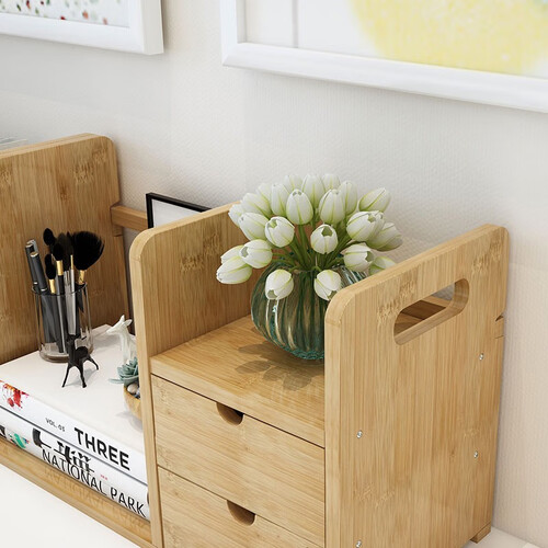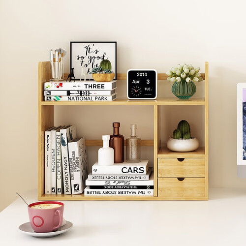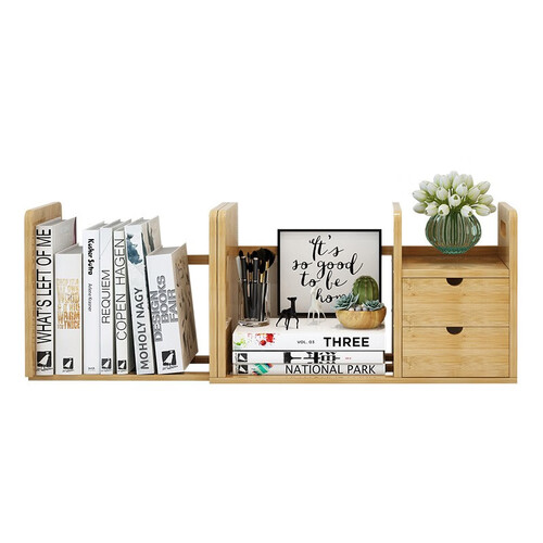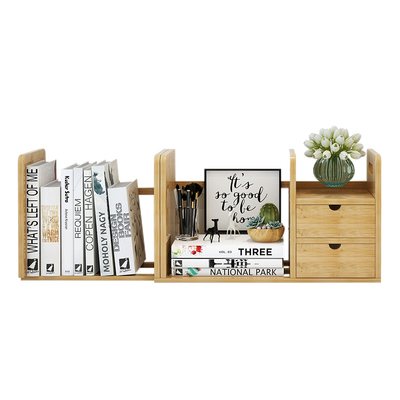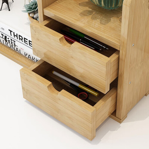 竹艺佳 双抽屉伸缩桌面收纳书架
