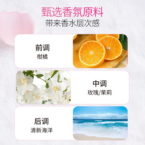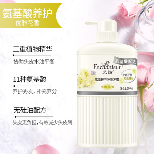 采用滋润的无硅油配方,添加祛屑成分,轻柔洁净去屑,保持头皮清爽,焕发发丝弹性。泡沫细腻清香,带来少女般的甜润感。