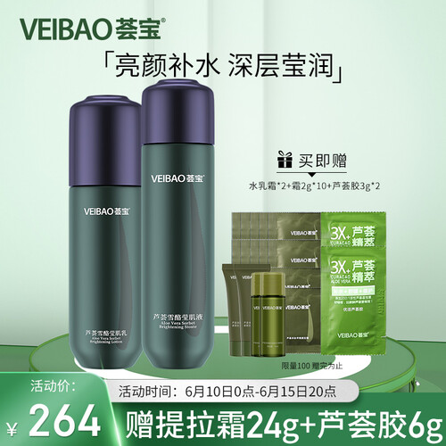 这款水乳套装组合,添加了芦荟精华,带来良好的补水保湿效果,能够深入肌肤里层,使皮肤保持水润透亮状态。