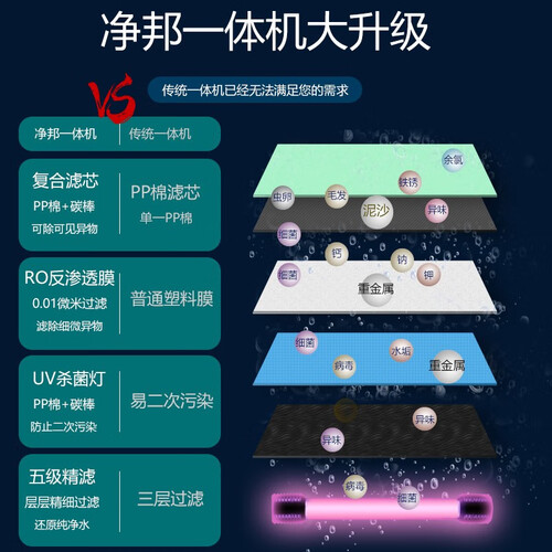 内置紫外线UV灯,可以为您和家人的饮水健康保驾护航。采用高清大屏设计,能够直观显示当前水质状况及滤芯剩余寿命。