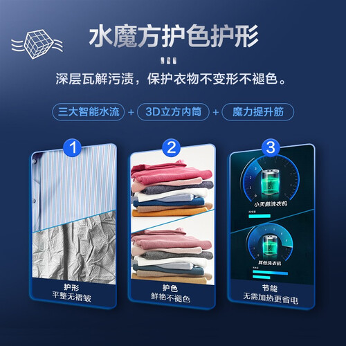 配备智能调节洗涤转速功能,自动感应衣物状态,减少衣物褶皱。拥有智能远程操控洗衣功能,在家也能轻松调节,生活更便捷。