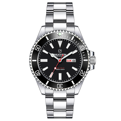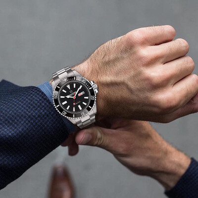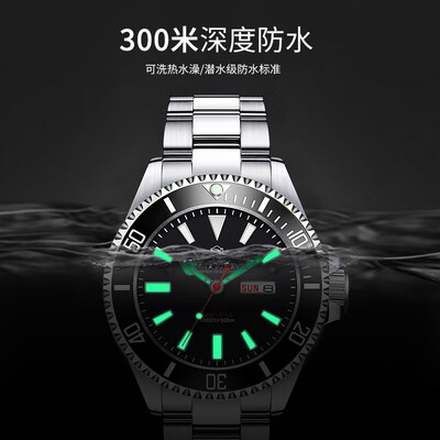 拥有300米深度的防水效果,可游泳可潜水,无需专门摘下手表。精钢材质制成的表带,坚固耐磨,贴合肌肤更舒适。