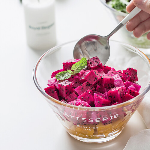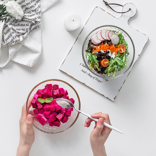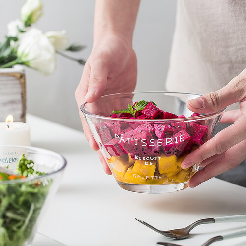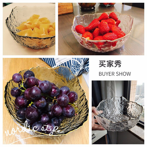 采用冰川似的造型设计,有手感的同时美观干净而且大方有气质,能过够完全凸显出蔬菜水果的本质颜色,质地采用无铅玻璃更加安全。