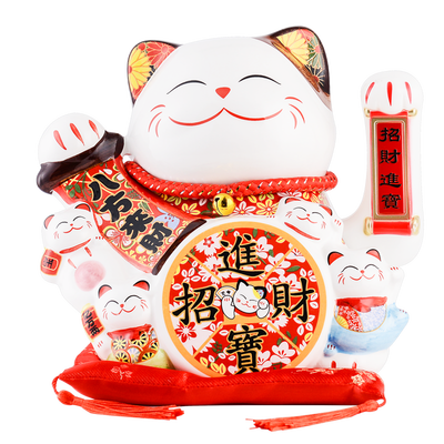 精美的釉下彩工艺,能够使招财猫整体造型更加精致美观,且颜色持久不掉色。加以电磁摇手设计,可为您招揽外来顾客。
