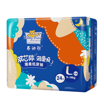 采用双芯体设计,锁水能力强,吸收容量大,结合双通微孔底层,可以迅速排出湿气,保持PP干爽。