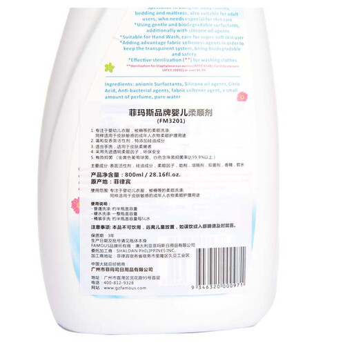 人性化手提设计,拿捏适手,要多少倒多少。无残留,持久留香,无污渍,无异味,不仅适合大人的衣服清洗,也适合宝宝衣物使用。