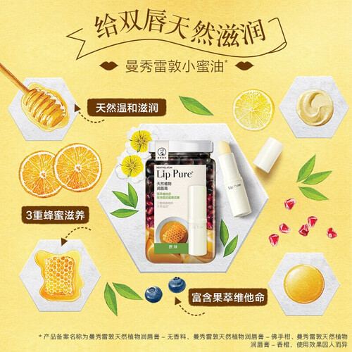 内含食品级天然成分不含色素和防腐剂,适用于多种人群,使用起来更放心。蕴含了多种植物萃取的成分,可以深润修护双唇。