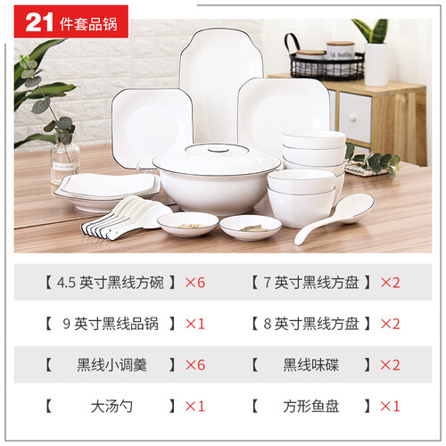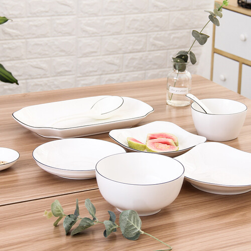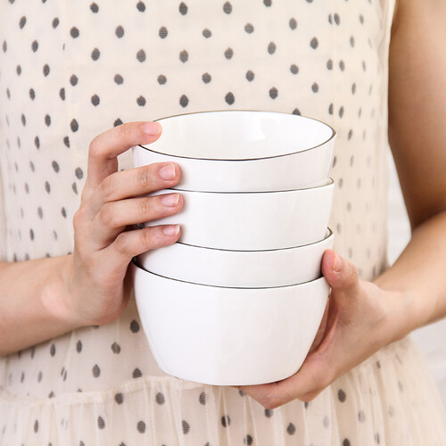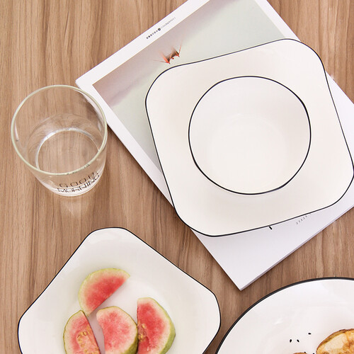 餐具以白色为主体,黑色描绘碗边,黑白相间,颜色清新简约,韵味自然,不会带给你杂乱的视觉感受。表面光滑,易于打理。