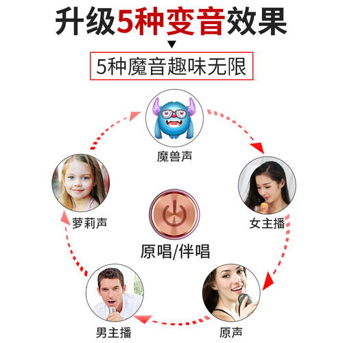 这款麦克风内置海绵防喷套,有效抑制杂音,为你还原真实歌声。拥有5W大功率喇叭,为你呈现立体音效。