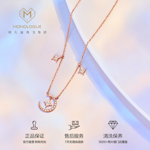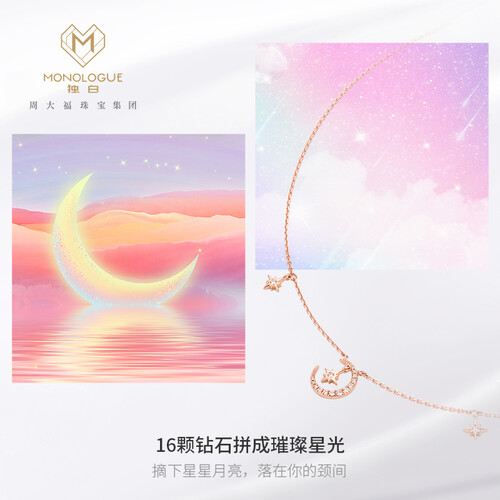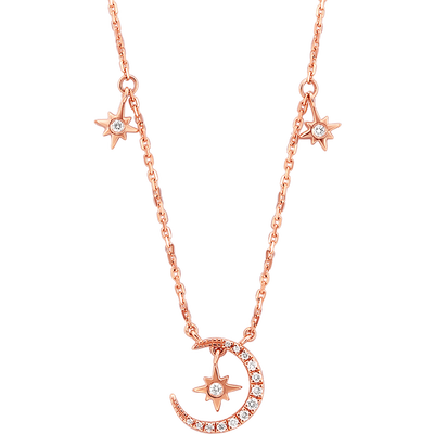 这款项链采用闪耀星星月亮造型设计,款式精美大气,轻松搭配各种穿搭。优雅玫瑰金配色,光泽闪耀迷人,凸显独特气质范。