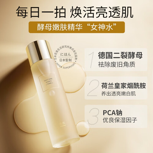 能去除旧角质,焕活透亮肌的爽肤水,内含德国进口二裂酵母,一拍就能被肌肤吸收,补水锁水,提亮肤色,让肌肤更柔嫩。